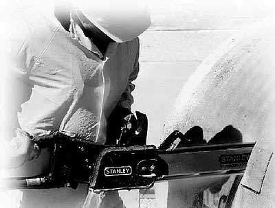 Просто и со вкусом. Цепь обсыпана алмазной крошкой и обработана прочими высокими технологиями. За счёт этого (и прочих особеноостей этой чудо-пилы) можно пилить буквально что угодно. Причём, как видно на фото, можно пилить просто втыкая шину в бетон. Проходит как нож сквозь масло.
